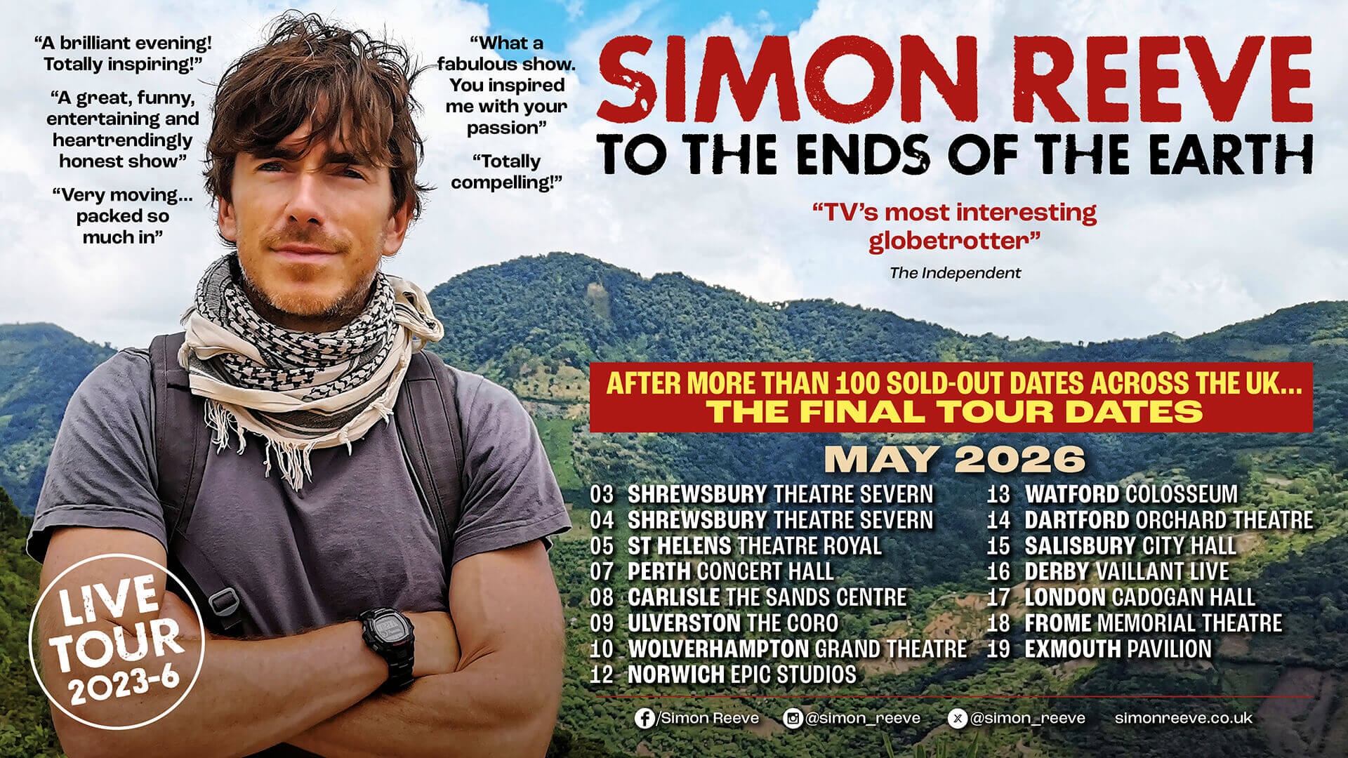 “I really hope the stories and advice I share on this tour will inspire people to get out of their comfort zone and have memorable experiences and adventures, wherever they are.” Simon Reeve